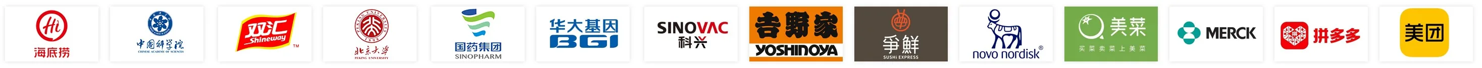 Over the past 16 years, our exceptional quality has empowered global leaders across industries. Our clients include: - Pharmaceutical companies: BGI Group, Novo Nordisk, Sinovac - E-commerce platforms: Meituan, JD.com, Meicai - Food and catering brands: Holiland, Yoshinoya - Government agencies: National Health Commission, China Customs, Chinese Center for Disease Control and Prevention - Educational institutions: Chinese Academy of Sciences, Peking University